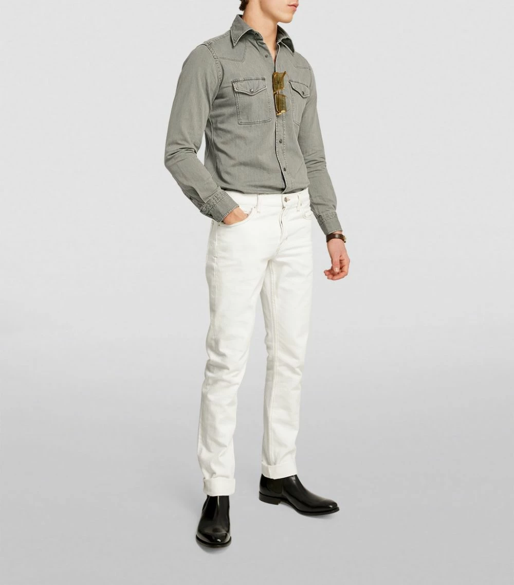 TOM FORD’s impeccable tailoring is always worth perusing in our eyes, but don’t let that mean you overlook its casual shirting collection. This denim iteration exudes a distinct ’70s feel thanks to two flap-down chest pockets and angular yoke detailing to the shoulders. Fasten the buttons all the way up to the top for a casual finish, or leave them undone and layer the piece atop a crisp white tee as a lightweight jacket.
