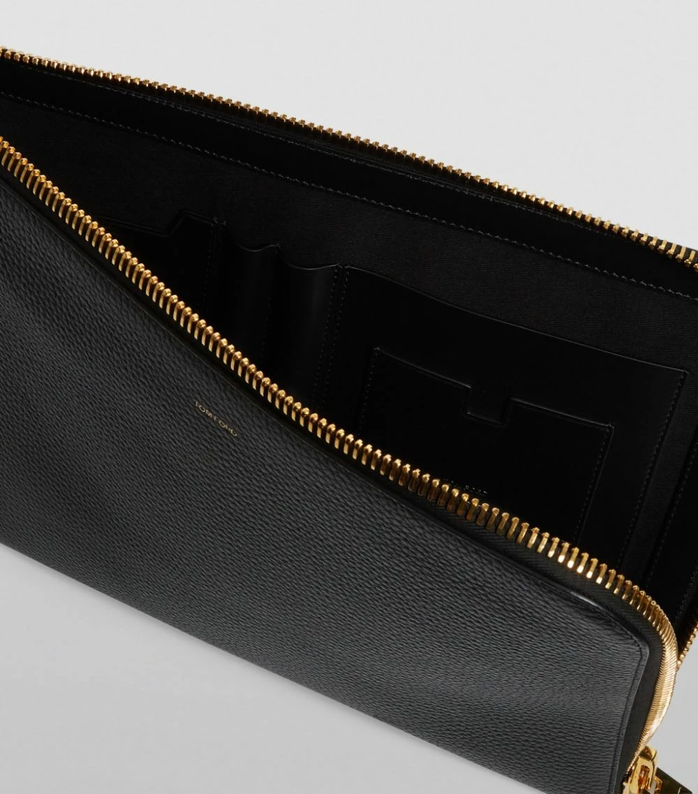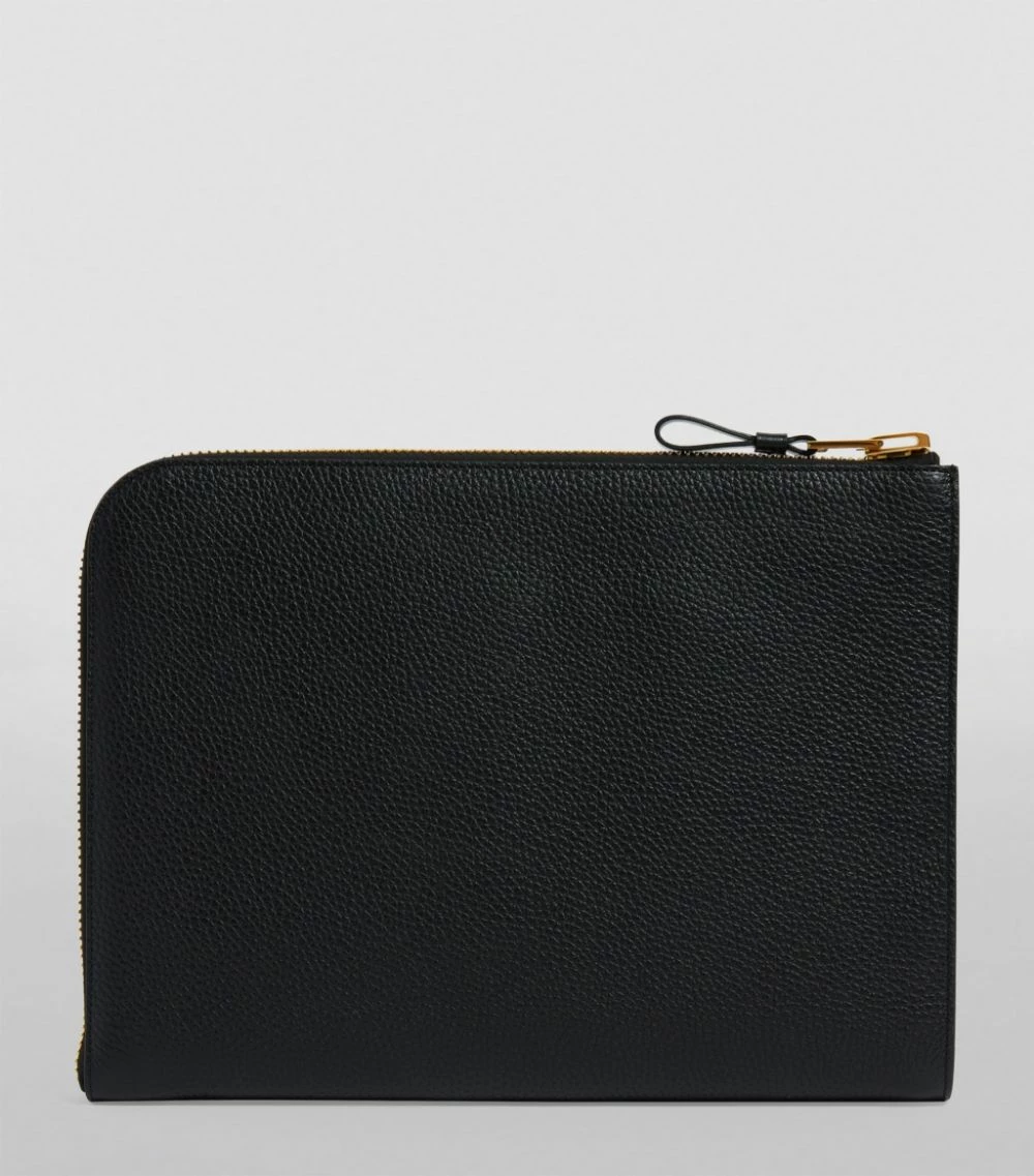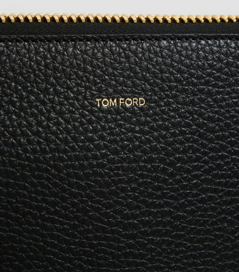 The sumptuous, rich texture of this TOM FORD Buckley zip pouch is left untouched, bar the miniature logo that accentuates the deep leather construction to reinforce the piece’s high-fashion credentials. Slim and easy to carry, it’s the perfect size for a laptop or tablet, with additional slip pockets to keep you organised throughout your working day. The chunky, gold-tone zip imbues the bag with a bold and contemporary decadence.