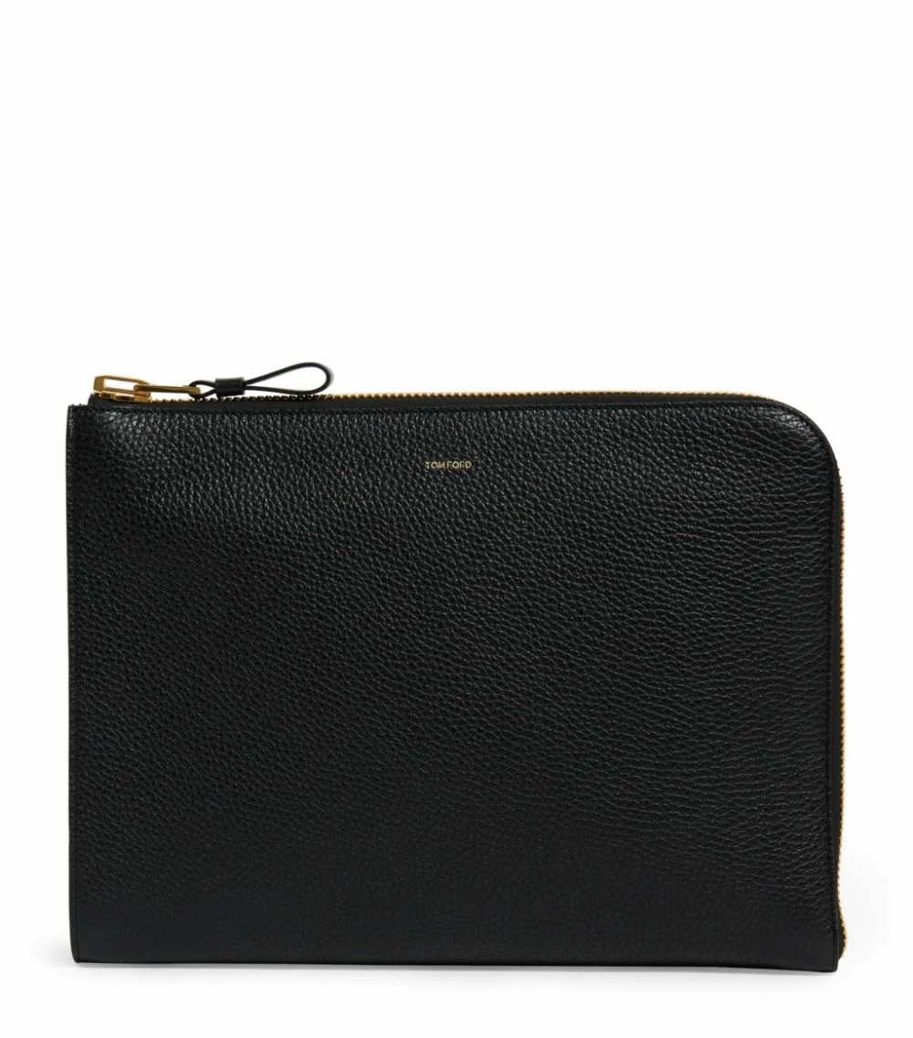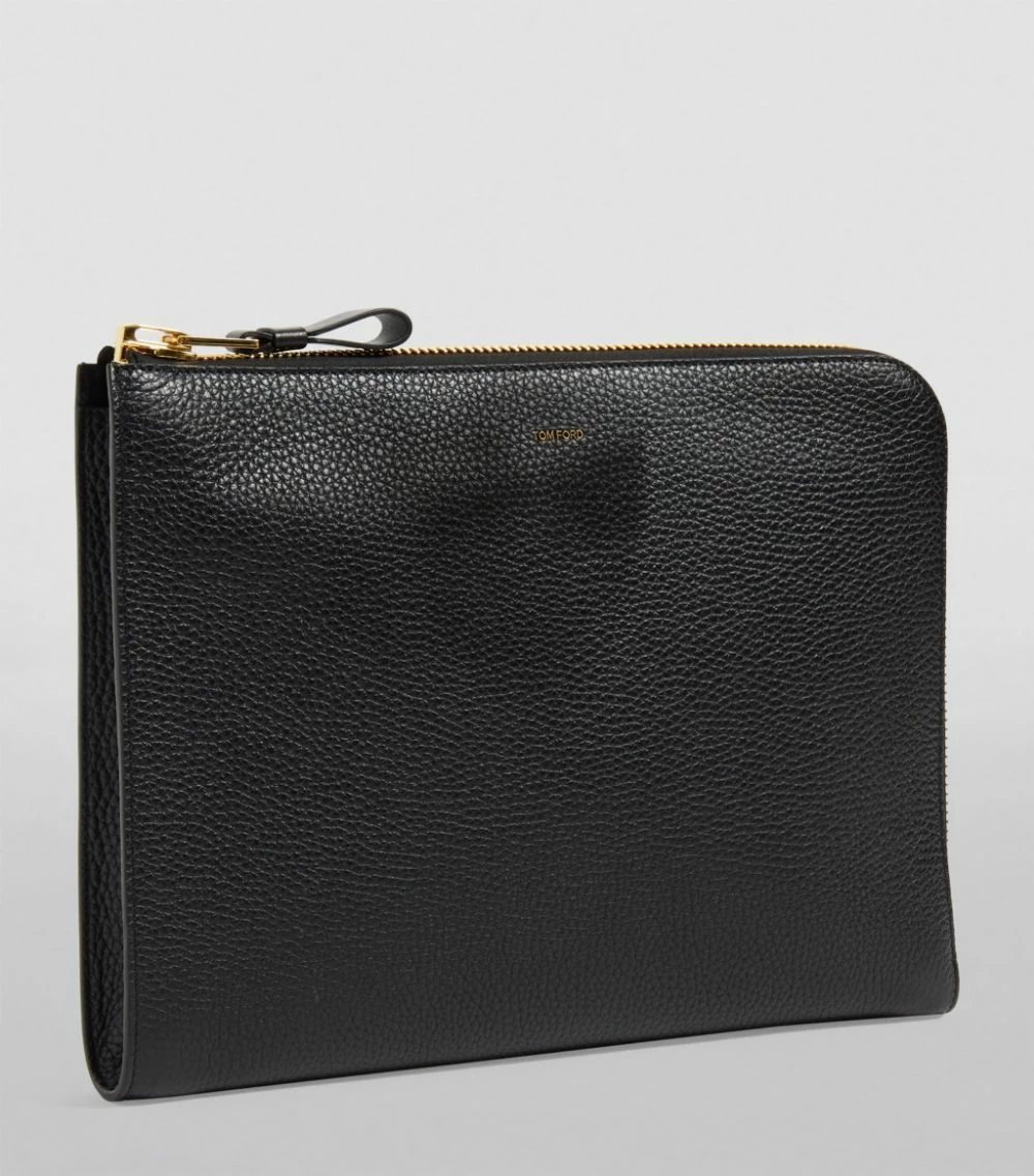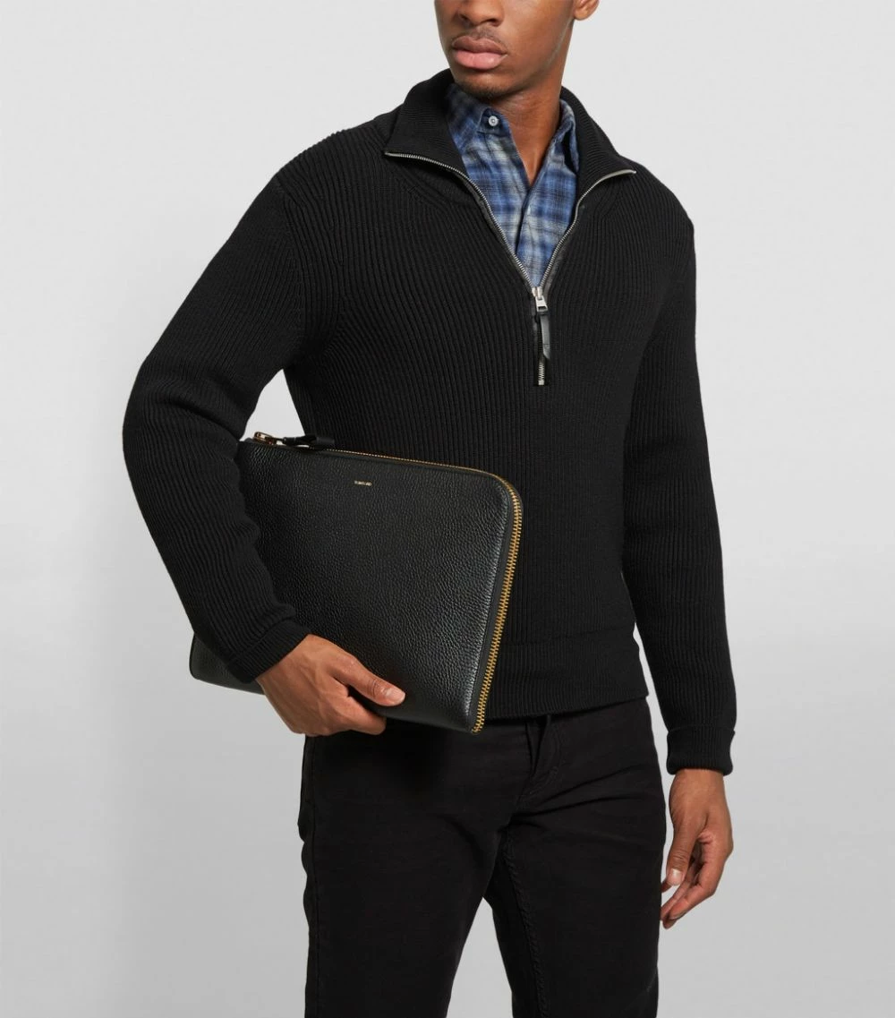 The sumptuous, rich texture of this TOM FORD Buckley zip pouch is left untouched, bar the miniature logo that accentuates the deep leather construction to reinforce the piece’s high-fashion credentials. Slim and easy to carry, it’s the perfect size for a laptop or tablet, with additional slip pockets to keep you organised throughout your working day. The chunky, gold-tone zip imbues the bag with a bold and contemporary decadence.