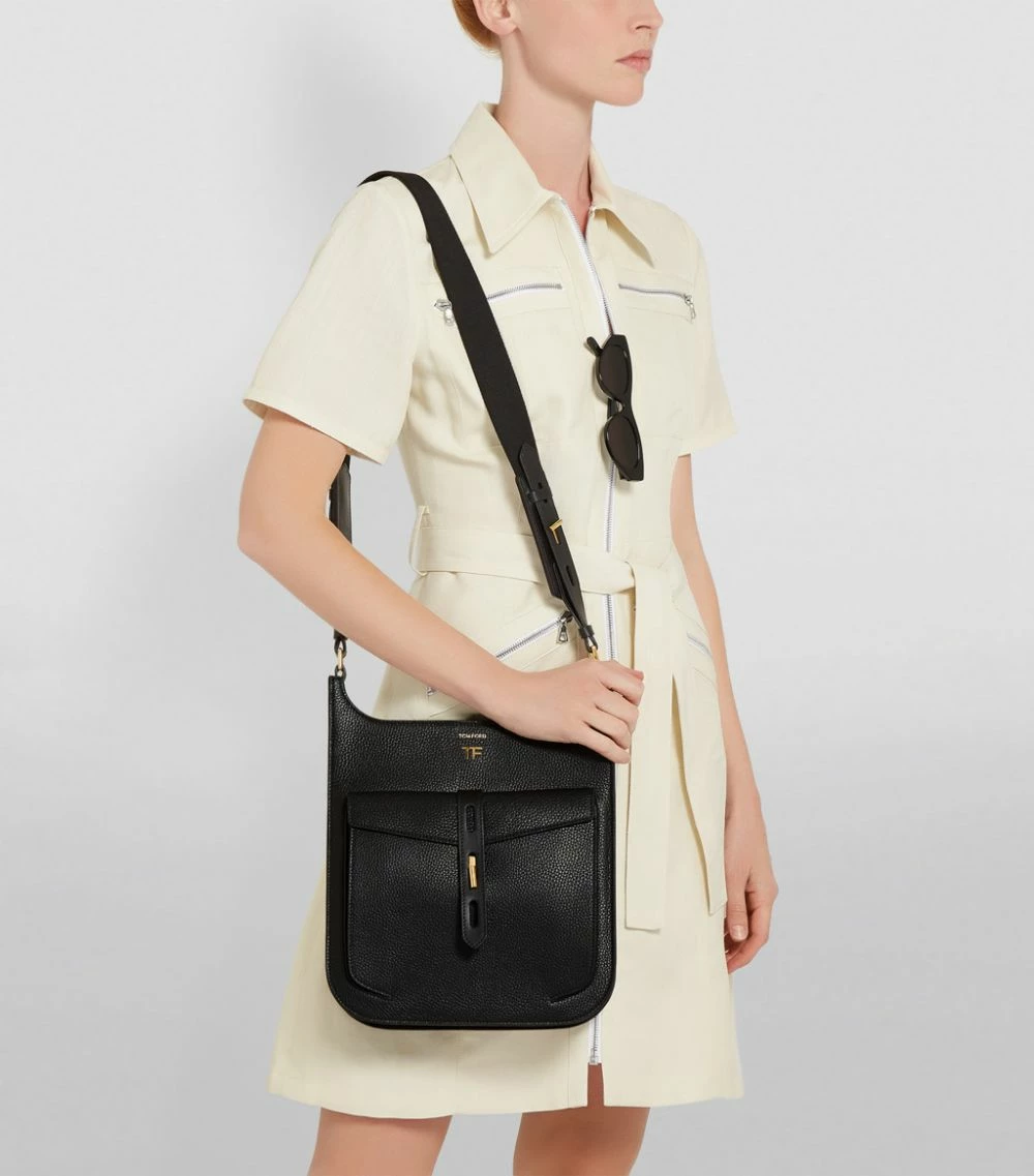 A sophisticated style crafted from sumptuous, grained leather, the TOM FORD T Twist Hobo shoulder bag brings the label’s Italian-crafted excellence to your accessories collection. Boasting a spacious exterior pocket, the sleek silhouette is punctuated with gleaming gold-tone hardware embossed with the TF initials.