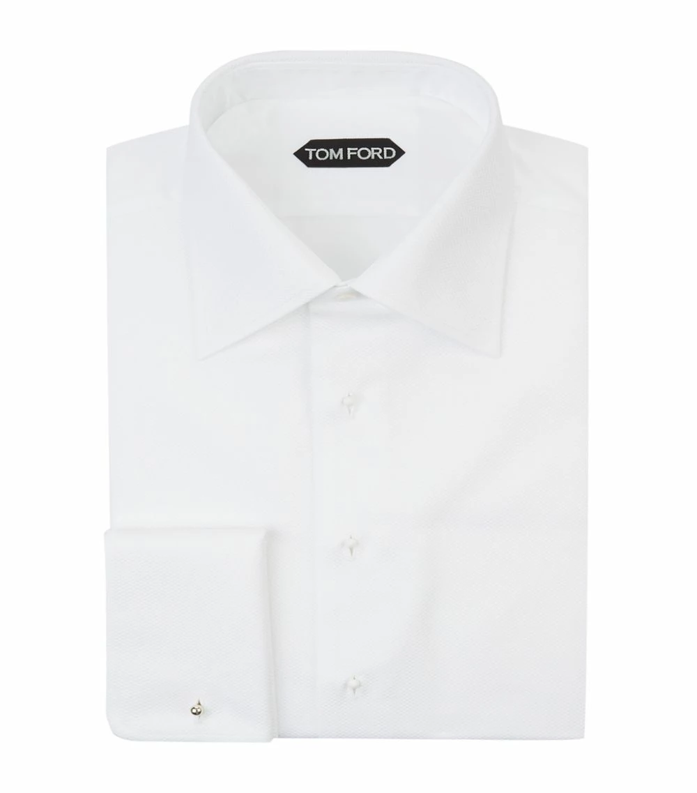 Give your smart staples a debonaire finish courtesy of the TOM FORD cocktail shirt. Luxuriously crafted with the finest cotton, it boasts a soft poplin design in crisp white and is complemented with a textured piqué bib, sharp point collar and double fastened cuffs. Perfect for any special evening occasion paired with sharply tailored trousers and polished shoes.