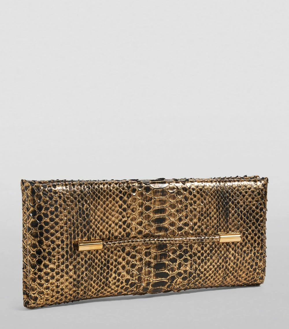 Inject instant elegance into evening ensembles with the Ava clutch bag from TOM FORD. Imagined in glossy, ultra-luxurious python skin, it boasts a structured, compact silhouette that comes complete with a contrasting side strap for a secure grip.