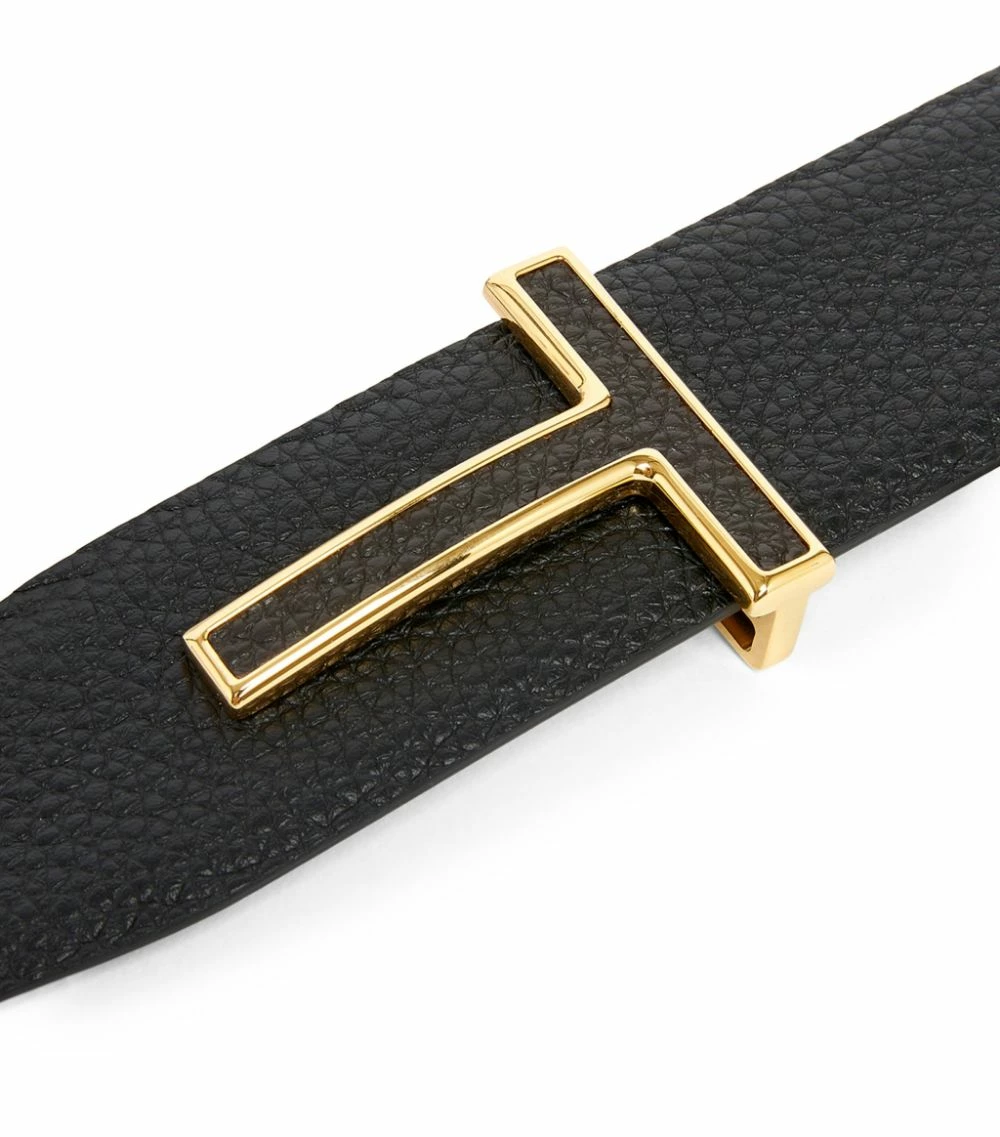 The iconic T-shaped buckle is given the luxury treatment in a polished gold-tone finish.