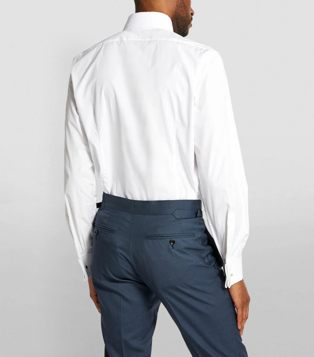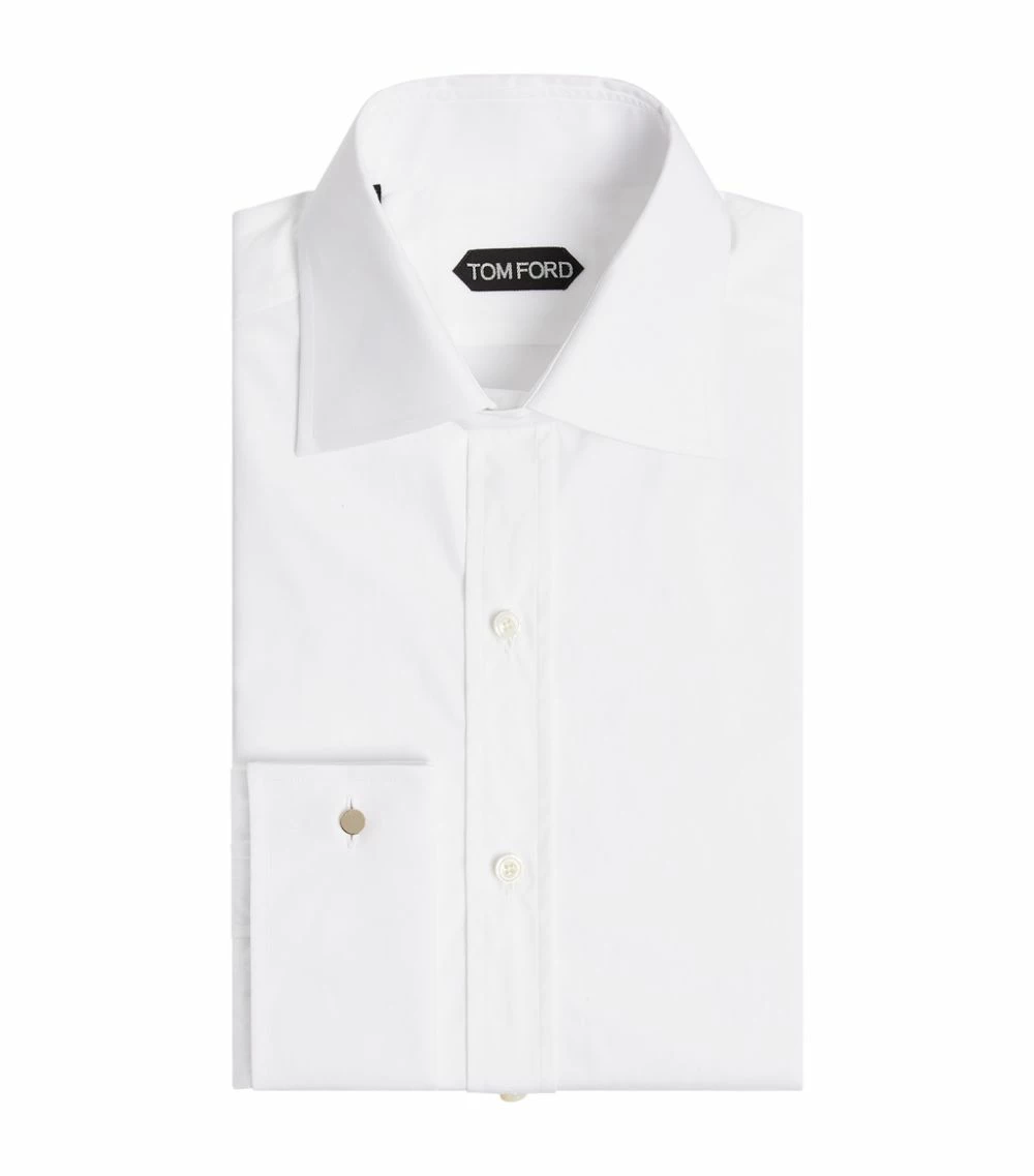 Infuse TOM FORD’s impeccable sophistication into your formal wardrobe courtesy of this crisp, sumptuously soft cotton shirt. With a smart point collar, the flattering slim-fit silhouette follows the lines of the torso and features classic French cuffs, perfect for layering beneath the designer’s tailored suits.