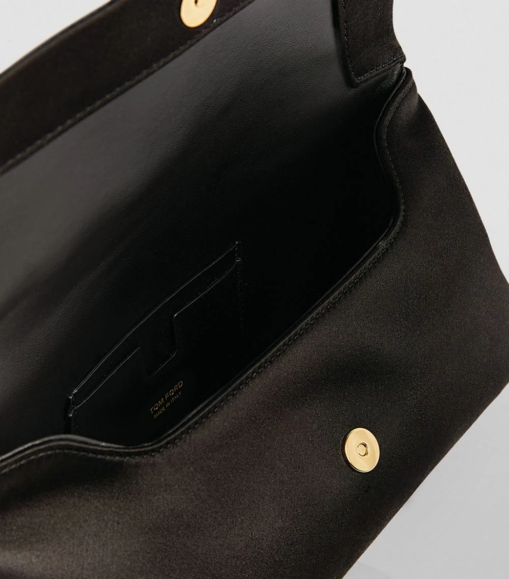 This clutch bag from TOM FORD makes the perfect companion to an after-dark ensemble; you’ll love it so much, in fact, that it might just make its way into your daily narrative. Made in Italy under the label’s expert hand, it features a satin profile with gold-tone hardware. Tuck it under the crook of your arm during the day, swapping to a handheld position when the sun goes down.